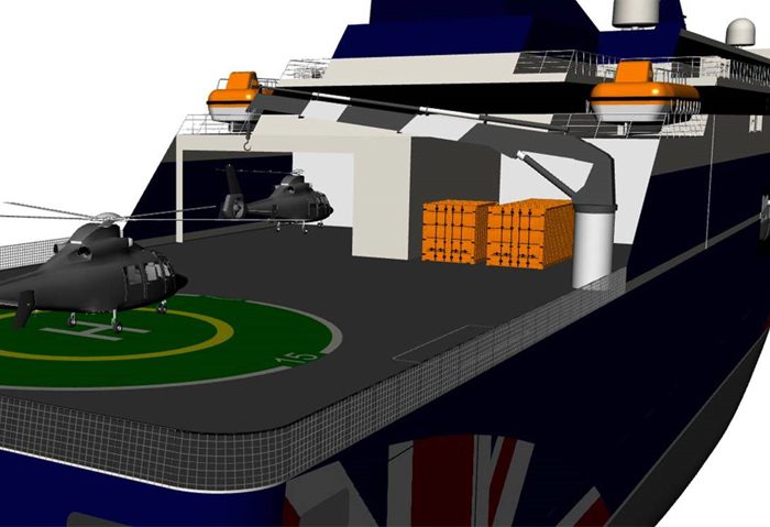 The ship is designed to handle roll-on/roll off wheeled cargo, containers and pallets and can deploy landing craft to deliver aid across a beach.